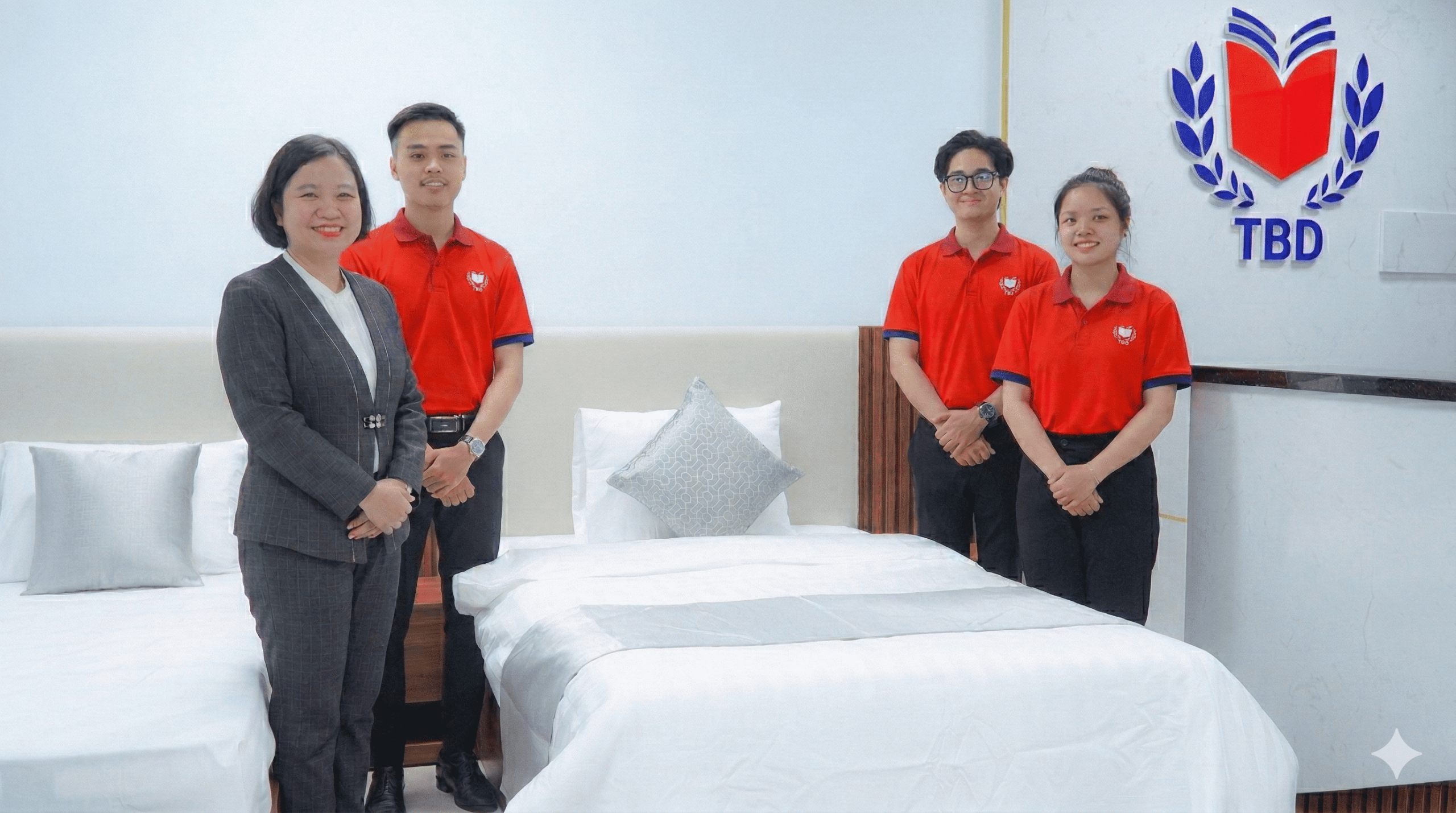 Trải nghiệm quy trình vận hành khách sạn thực tế ngay tại trường với hệ thống buồng phòng thiết kế theo tiêu chuẩn quốc tế
