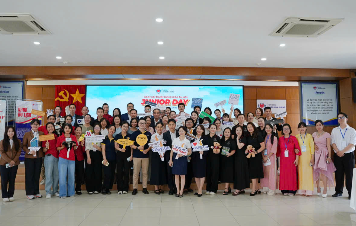 Khoa Du lịch xin gửi lời tri ân sâu sắc nhất tới 14 đối tác chiến lược đã cùng chúng tôi tạo nên một ngày Junior Day 2026 đầy cảm hứng. Sự hiện diện của các thương hiệu hàng đầu không chỉ mở ra cánh cửa nghề nghiệp cho sinh viên, mà còn là bảo chứng khách quan nhất cho chương trình đào tạo gắn liền với thực tiễn của Khoa. Khi doanh nghiệp trực tiếp tham gia định hướng và đánh giá, khoảng cách giữa giảng đường và môi trường 5 sao được xóa nhòa. Chính sự đồng hành này đã tạo nên một thước đo chuẩn mực, giúp các bạn sinh viên tự tin bắt nhịp với những tiêu chuẩn khắt khe nhất của ngành ngay từ khi còn ngồi trên ghế nhà trường.
